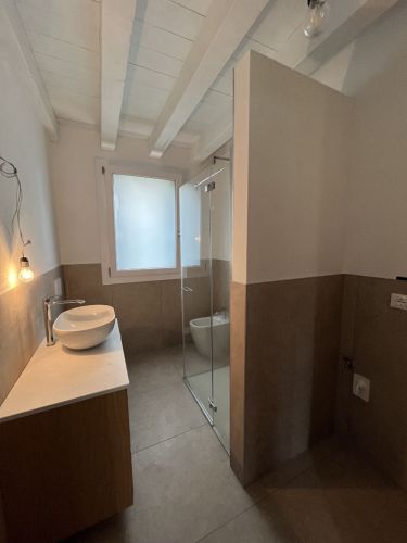 - Rifacimento completo delle tubazioni, redistribuzione dei sanitari, sostituzione della vasca con una funzionale doccia e creazione di un vano lavanderia.